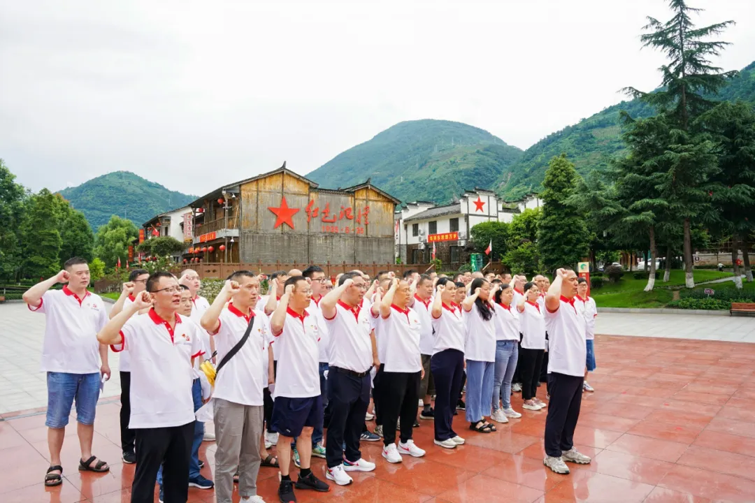 在红军头像纪念碑前,面对鲜红的党旗,大家高举右手,紧握拳头,郑重且庄严地重温入党誓词。那一声声铿锵有力的誓言,是对先烈的最好纪念,也是对未来的郑重承诺。在浓厚的党旗氛围中,每位党员同志都深切感受到了红色情怀的力量。